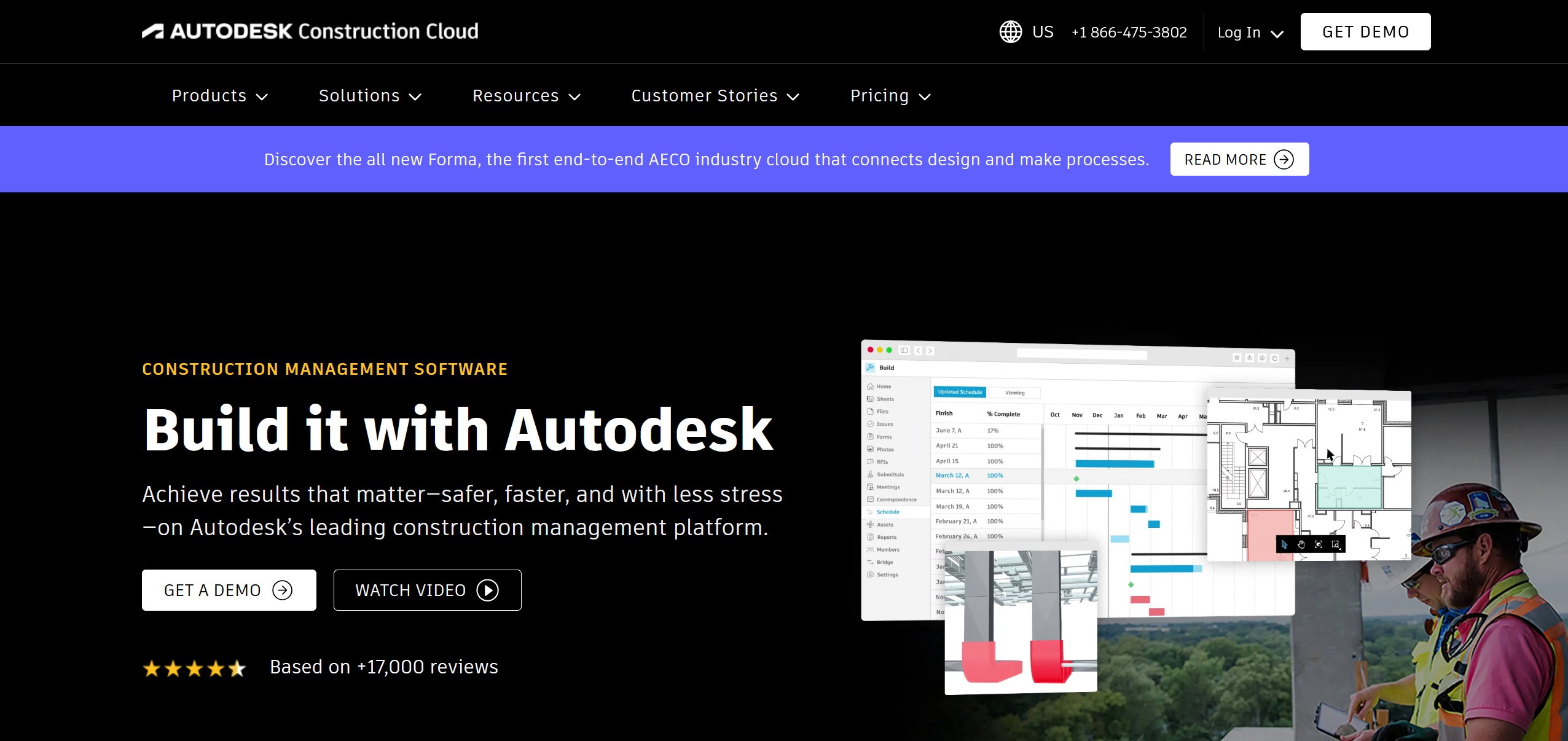 Die Punchlist-Funktionen von Autodesk Construction Cloud sind Teil eines umfassenderen Baumanagement-Ökosystems, das Planung, Bau und Betrieb miteinander verbindet. Insbesondere die Pannenliste lässt sich gut mit dem Dokumentenmanagement, der Projektverfolgung, dem Kostenmanagement und der Zusammenarbeit bei der Planung koordinieren. Das Programm zeichnet sich durch seine digitalen Zeichnungsfunktionen, seine Markierungen und den Zugriff auf die Felddaten aus. Wenn Sie ein System für die Zusammenarbeit zwischen Büro und Außendienst mit einem einfachen Arbeitsablauf suchen, ist Autodesk Construction Cloud (ACC) eine Option, die Sie in Betracht ziehen sollten.