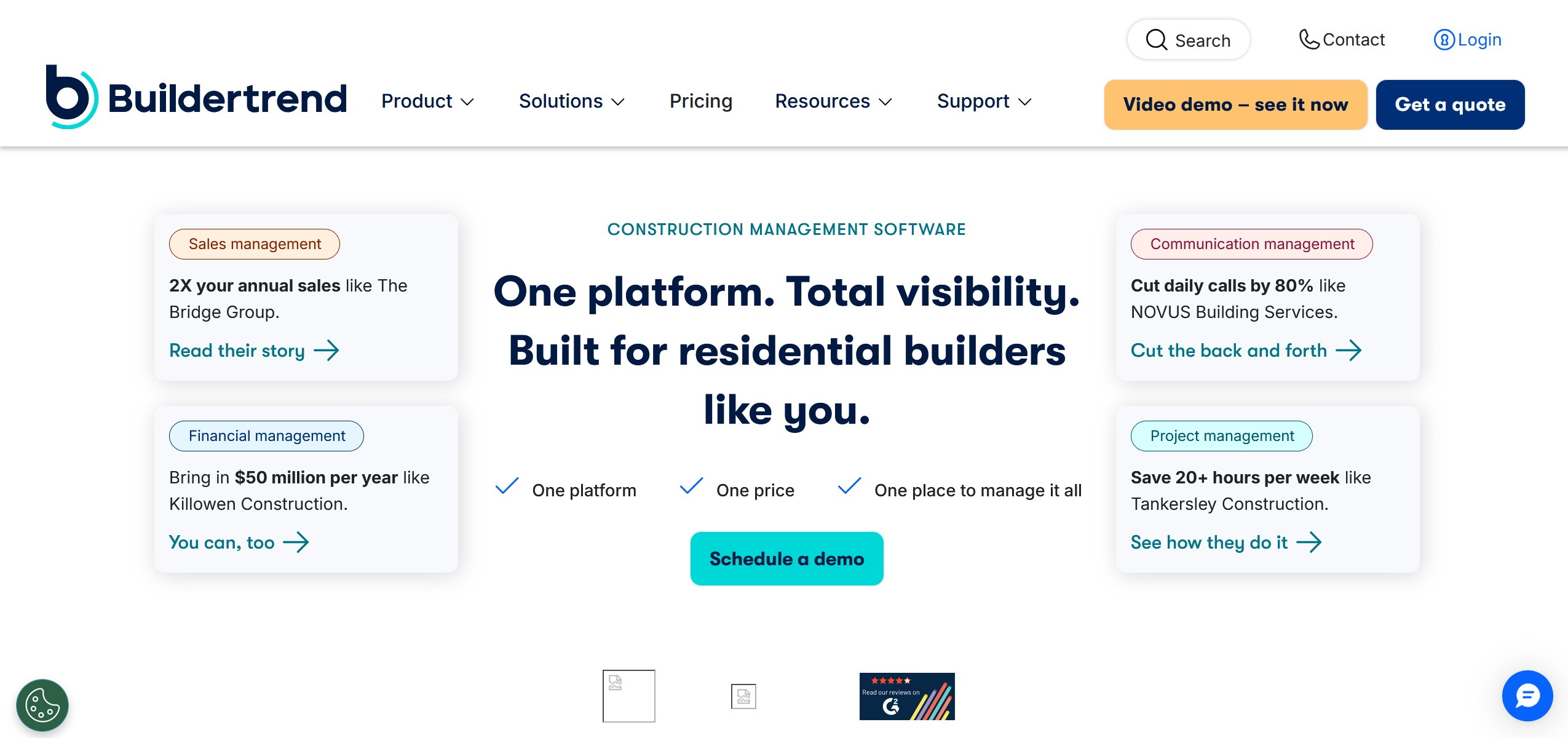 - Buildertrend – Am besten geeignet für das All-in-One-Projektmanagement und die Pannenlistenverfolgung bei Wohn- und Umbauprojekten