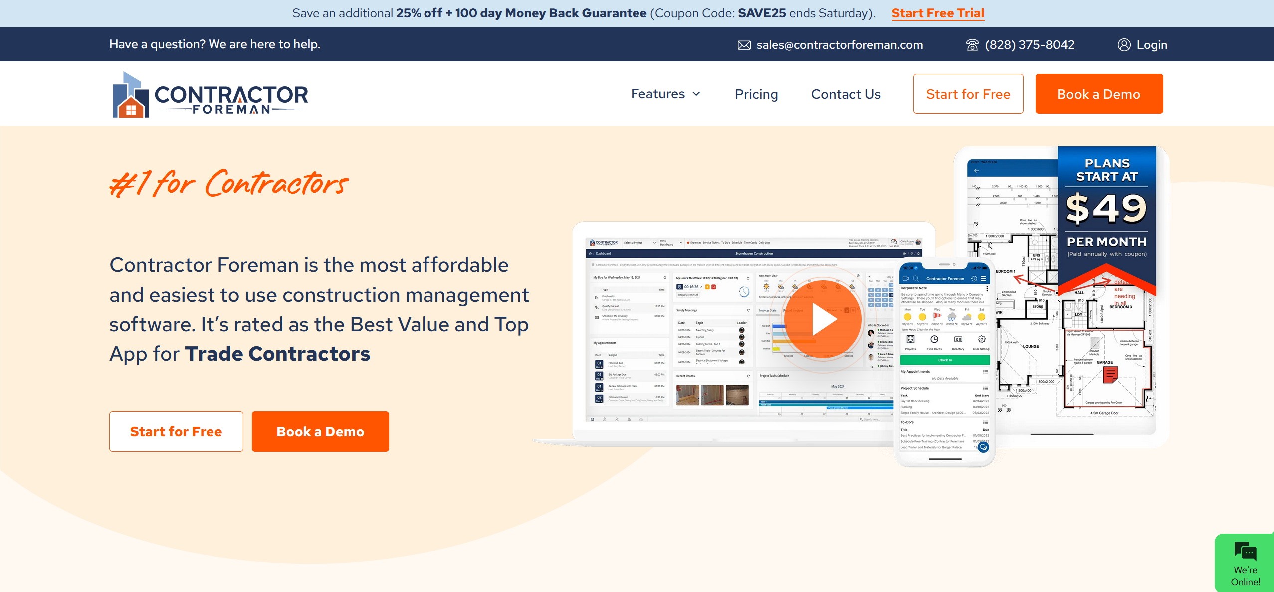 - Contractor Foreman – Am besten geeignet für ein erschwingliches All-in-One-Baumanagement mit Pannenlistenfunktion für kostenbewusste Bauunternehmer