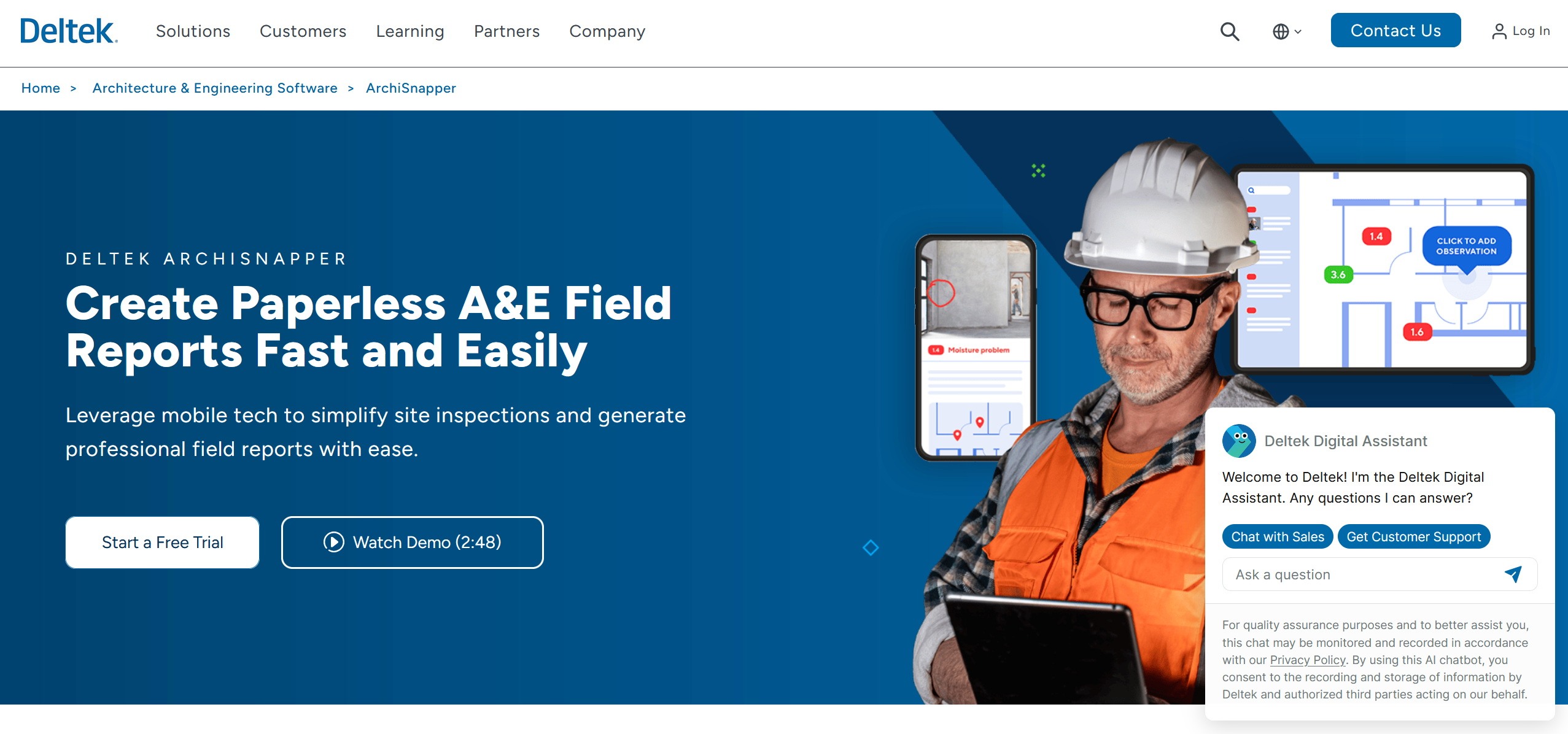 - ArchiSnapper (Deltek) – Am besten geeignet für Architekten und Inspektoren, die einfache, auf die Inspektion ausgerichtete Pannenlistenberichte benötigen