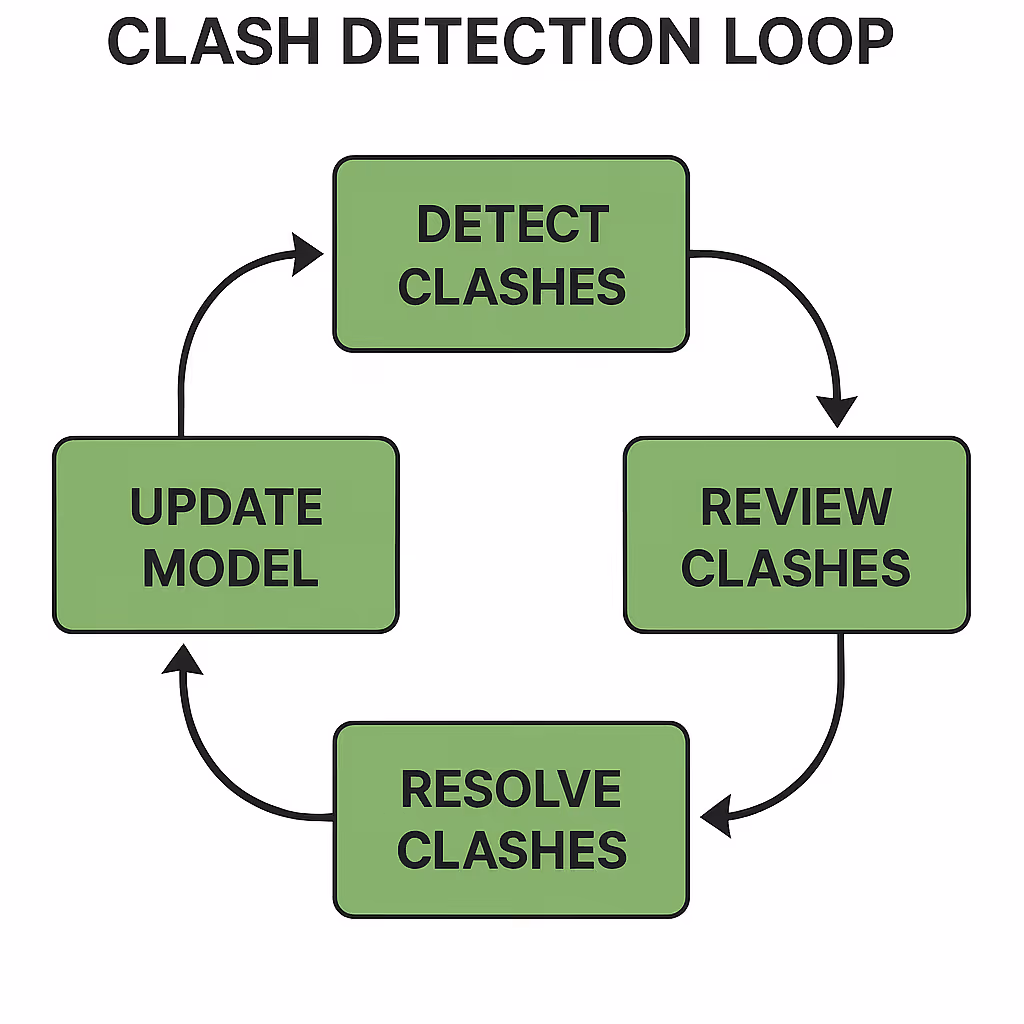 Die Kollisionserkennung bietet unmittelbare Kostenvorteile, da Konflikte bereits vor Baubeginn erkannt werden. Unerkannte Konflikte führen häufig zu einer Kettenreaktion von Problemen, die von Problemen bei der Ressourcenzuweisung und unrealistischen Änderungsaufträgen bis hin zu Terminverzögerungen und anderen Problemen reichen.