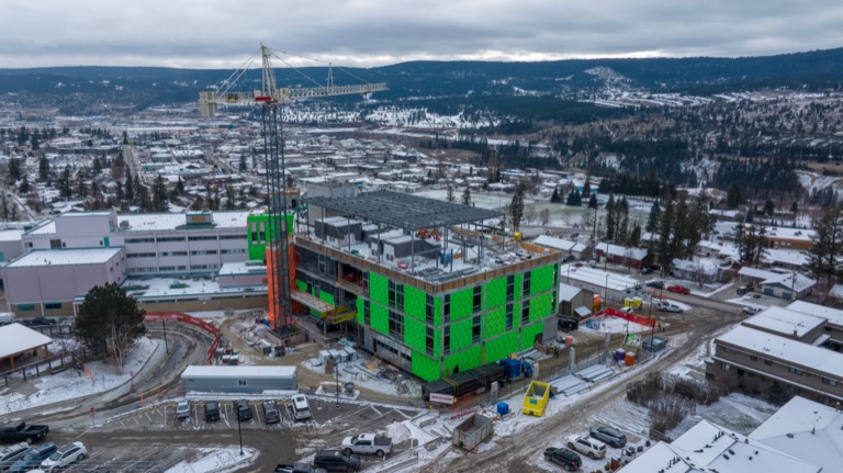 The Cariboo Memorial Hospital Redevelopment Project is a four-story expansion to the existing hospital in Williams Lake, BC, serving not only the city but also the Cariboo Chilcotin and 100 Mile House Local Health Areas, within the traditional territories of the Secwepemc (Shuswap Interior Salish) First Nation. Carefully phased to maintain uninterrupted hospital services, the project incorporates new emergency department facilities, medical/surgical inpatient units, maternal and women’s health services, mental health and substance use beds, pharmacy services, and academic space for the University of British Columbia.