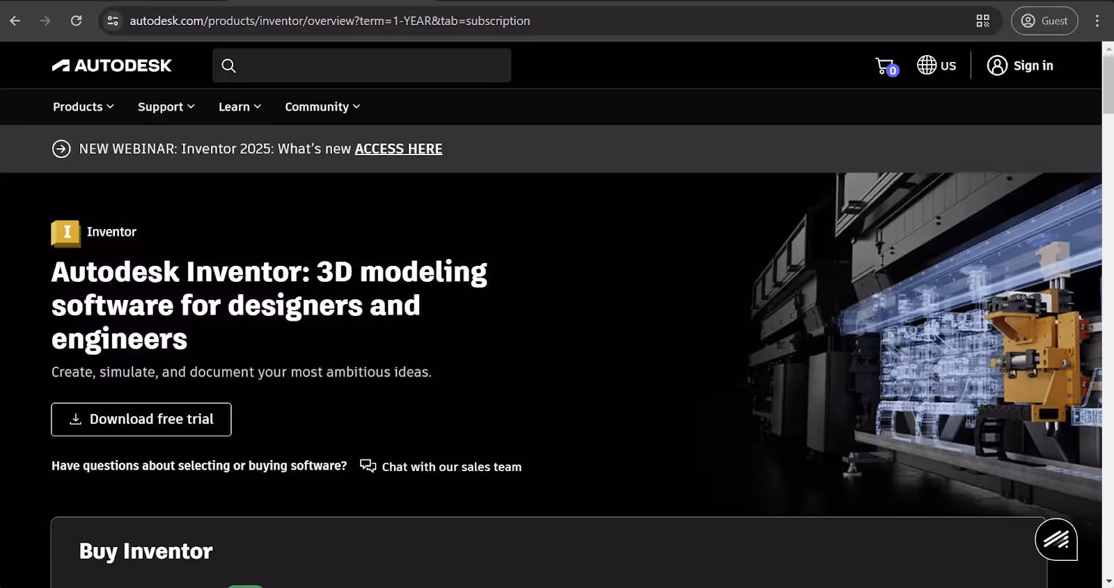 - L’abonnement à Autodesk Inventor se compose d’un seul niveau de prix et de trois périodes d’abonnement possibles :
