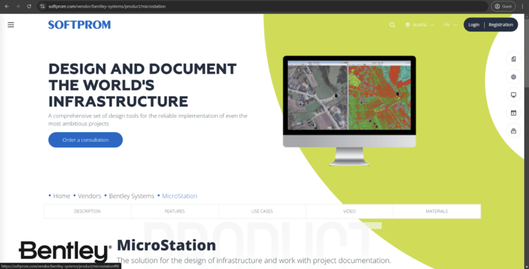 MicroStation excels in handling civil engineering projects such as railways, bridges, roads, and other projects that involve infrastructure design. Its 2D drafting capabilities are also exceptional, offering a lot of control over the drawing process in all of its iterations. It is one of the few solutions on this list that works better with large-scale projects than Archicad, and the integration capabilities of Bentley’s software are also impressive, with support for other Bentley products (OpenRail, OpenBuildings, OpenRoads, etc.).