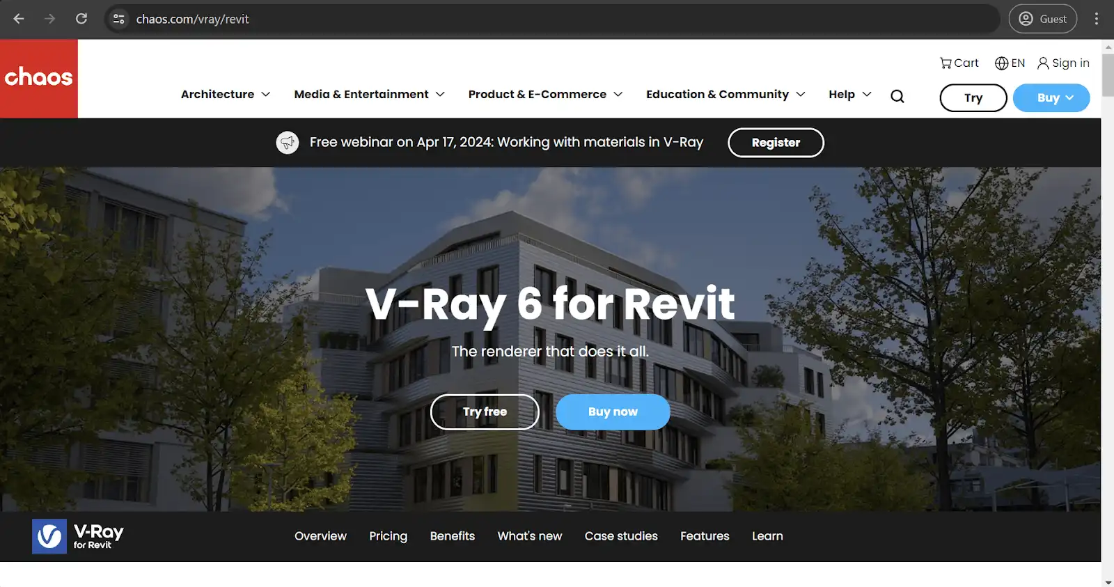 V-Ray is one of the best-known third-party rendering engines on the market. It is available for Revit, SketchUp, 3dsMax, and more. It is fast and detailed and produces practically photorealistic renders in a very generous time frame. The fact that it is a plugin makes it possible to perform all rendering manipulations from inside Revit, which is an undeniable advantage for some users.